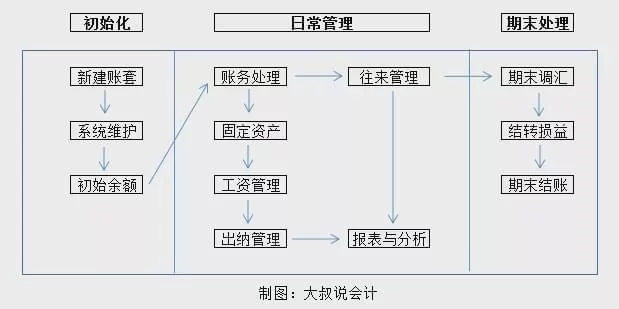 在會計的日常工作中,金蝶軟件是會計實際工作中最常見之一。整個軟件在使用的過程中可以分為三大部分:初始化、日常管理、期末處理。