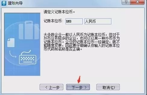 5)下一步進入到定義記賬本位幣,這里可以根據公司業務需求進行修改。我們這里選擇默認為RMB。