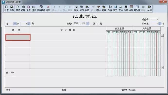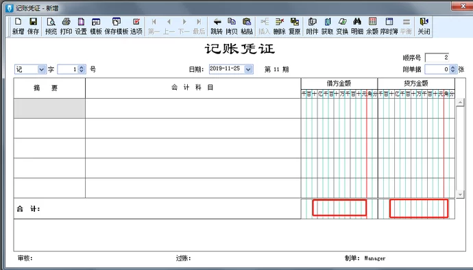 借方合計和貸方合計金額的填寫。一般為自動生成,兩邊借貸金額必須相等,否則沒辦法保存。