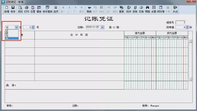 ①選擇憑證字類型。記賬憑證和收付轉憑證,是你記賬的時候的憑證分錄。(一般小公司都只用記賬憑證。)